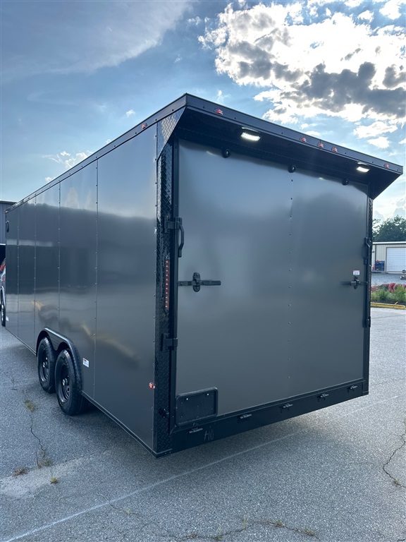 We can order any size and color Multiple purchase available Rent to own Walls made of 0.80 Polycore. Interior height of 7 2 feet extra V-nose. 5200lb axle (each axle) GVWR:10.400 Electric brakes on both axles. Rear loading heavy duty ramp 2 Way Sidewall Vents. 3/4 Plywood Floors. 3/8 Plywood Walls. 16? on Center Cross Members. LED Lights all around. Title in hand